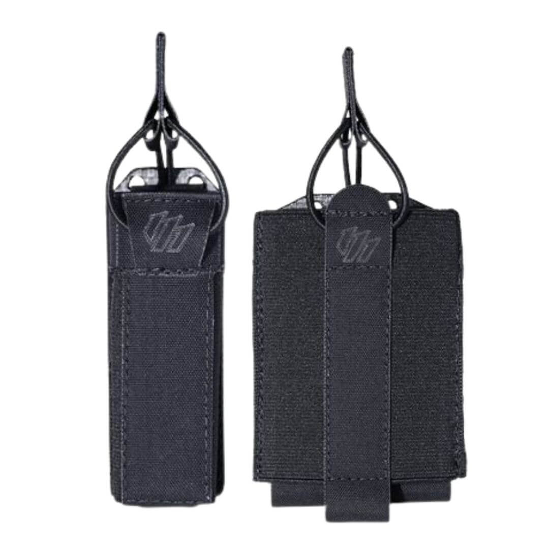 - Bolso Adicional: Possui um bolso elástico adicional que pode acomodar uma lanterna, outros acessórios ou até um segundo carregador, transformando-o em um porta carregador duplo.